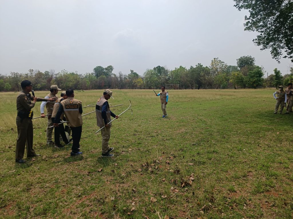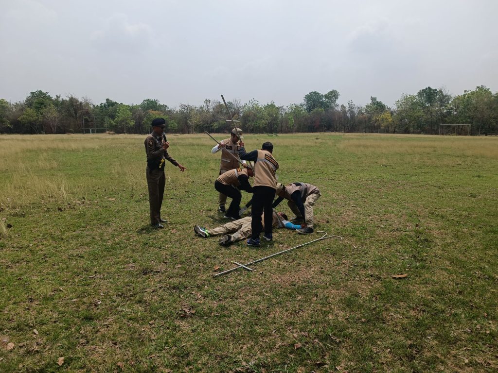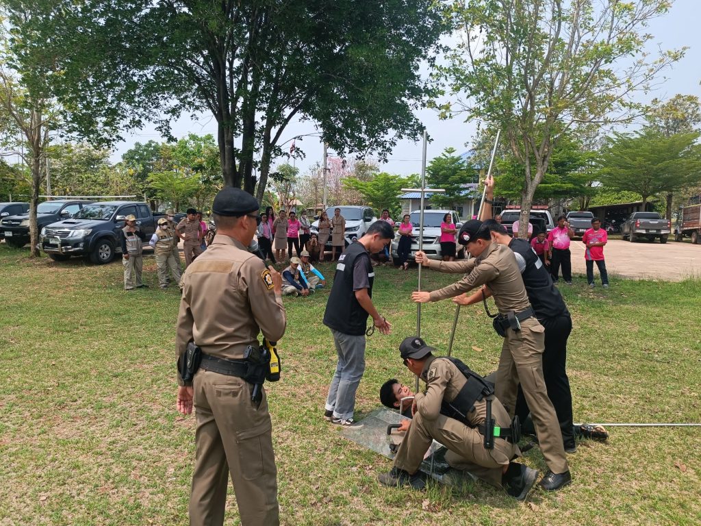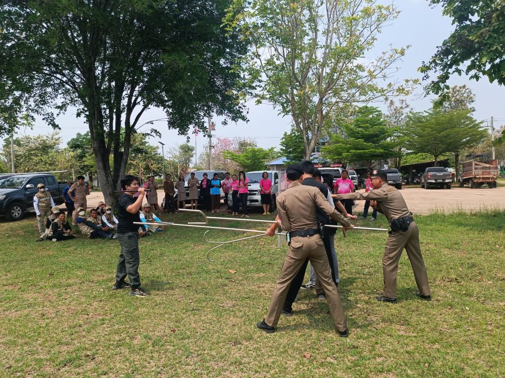 การฝึกอบรมทบทวนการเข้าเผชิญเหตุใช้ไม้ง่ามในการระงับเหตุบุคคลคุ้มคลั่ง